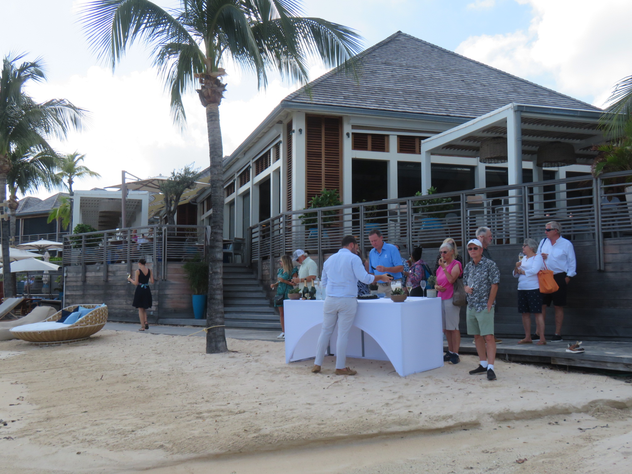 One of the highlights was champagne and canapes at Le Barthelemy Hotel, from its seaside restaurant, Amis St. Barth, led by Michelin-starred chef Jéremy Czaplicki. One of our canapes was a charcoal encrusted shrimp that was incredible – not your everyday blackened shrimp!