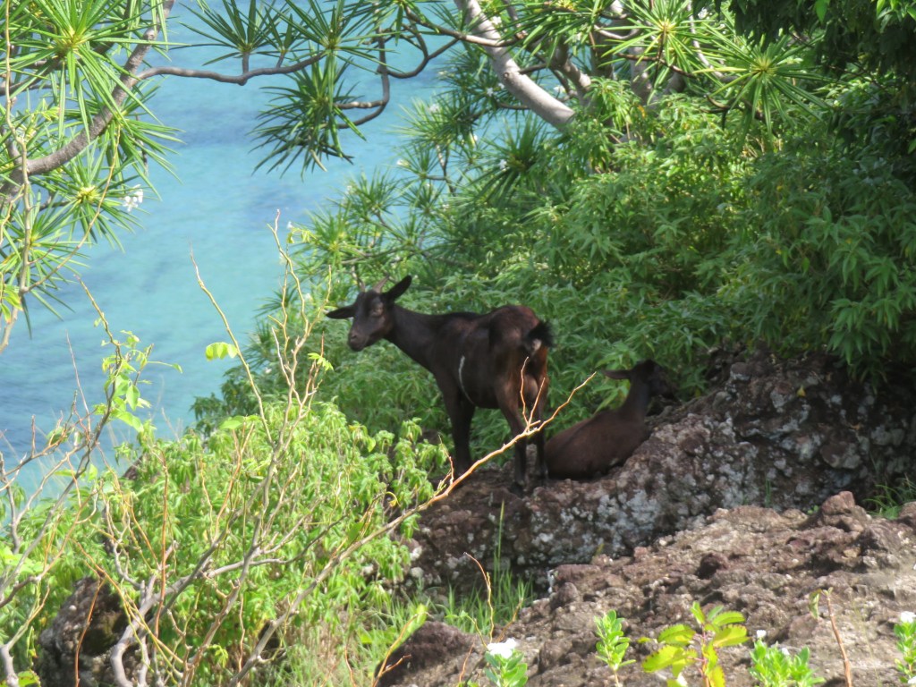 We hiked most of the way up to Mount Morel, on the north part of the island, but one of us found she couldn’t tolerate the heat, so we turned back. Heat stroke just isn’t fun! Although we missed out on the best views, we still were able to see quite a bit. We did see some goats and chickens along the way, as well as a few crabs (pretty far from water.)