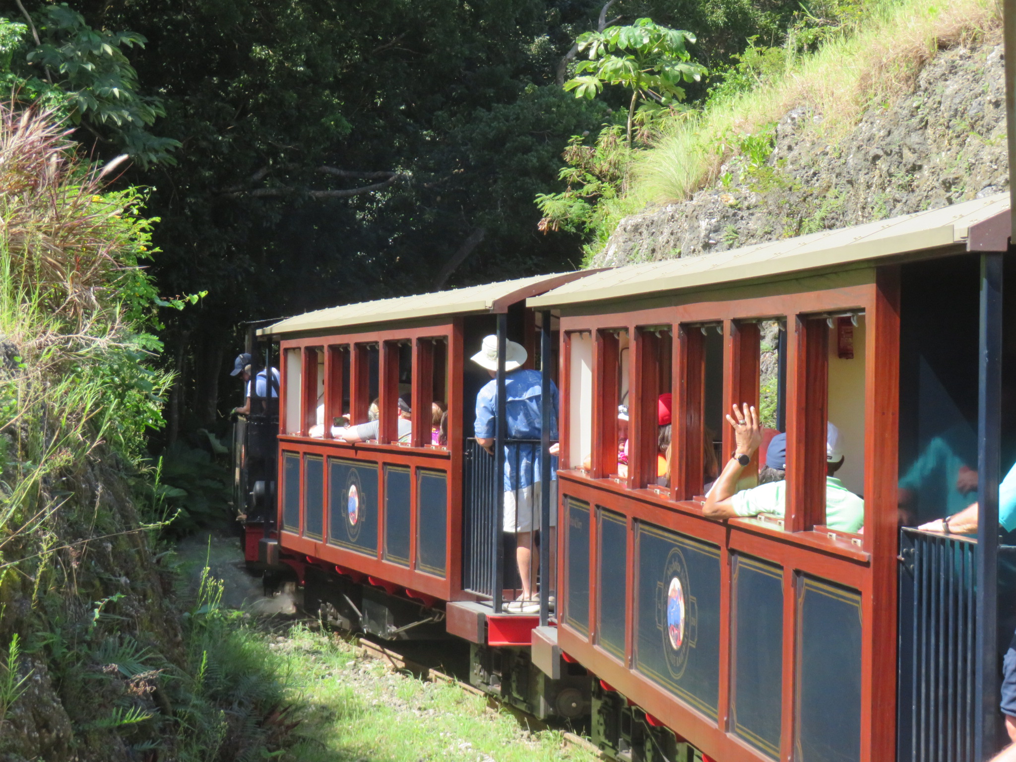 We began our tour by boarding their steam engine, and riding up to Cherry Tree Hill for some fabulous views of the area known as the Scottish District – St. Andrew’s Parish. The area traversed by the train was originally lined by cherry trees, thus the name. They were replaced with mahogany trees by Sir Gay Alleyne in the mid-1700s. Sir Gay is the founder of Mount Gay Rum. Mahogany is not native to the area. It was used for furniture on the island, but it is now protected since it takes so long for a tree to come to maturity – 25 years.