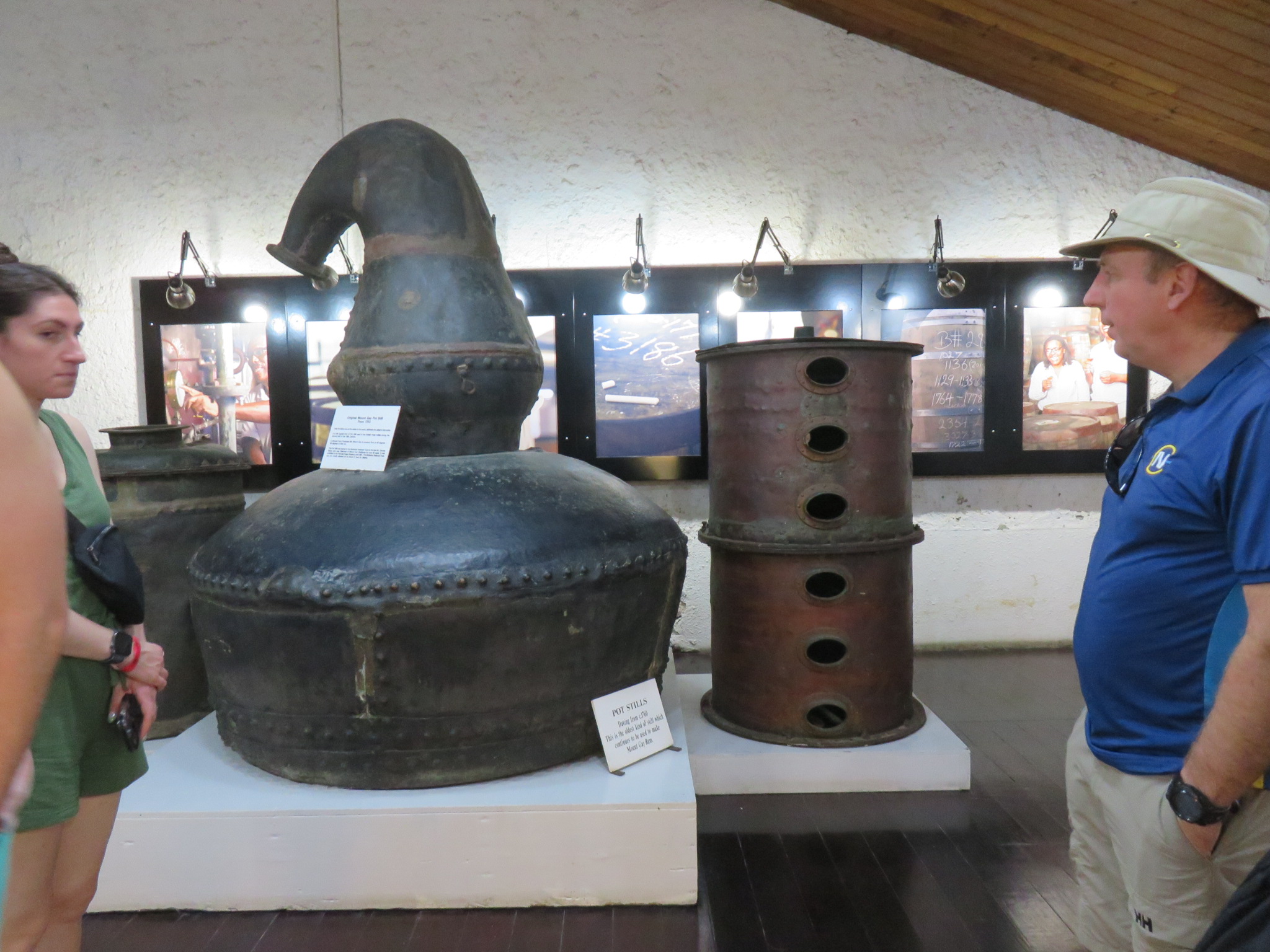 Then we toured the Factory, Steam Mill and Distillery. All of this was topped off with some rum tastings, and of course, an opportunity to purchase some to take with us. The rum tastings were hosted by one of the owner’s sons, Simon Warren, who clearly loves interacting with the tourists. He and Mark struck up a conversation about alternative energy sources, specifically hydrogen.
