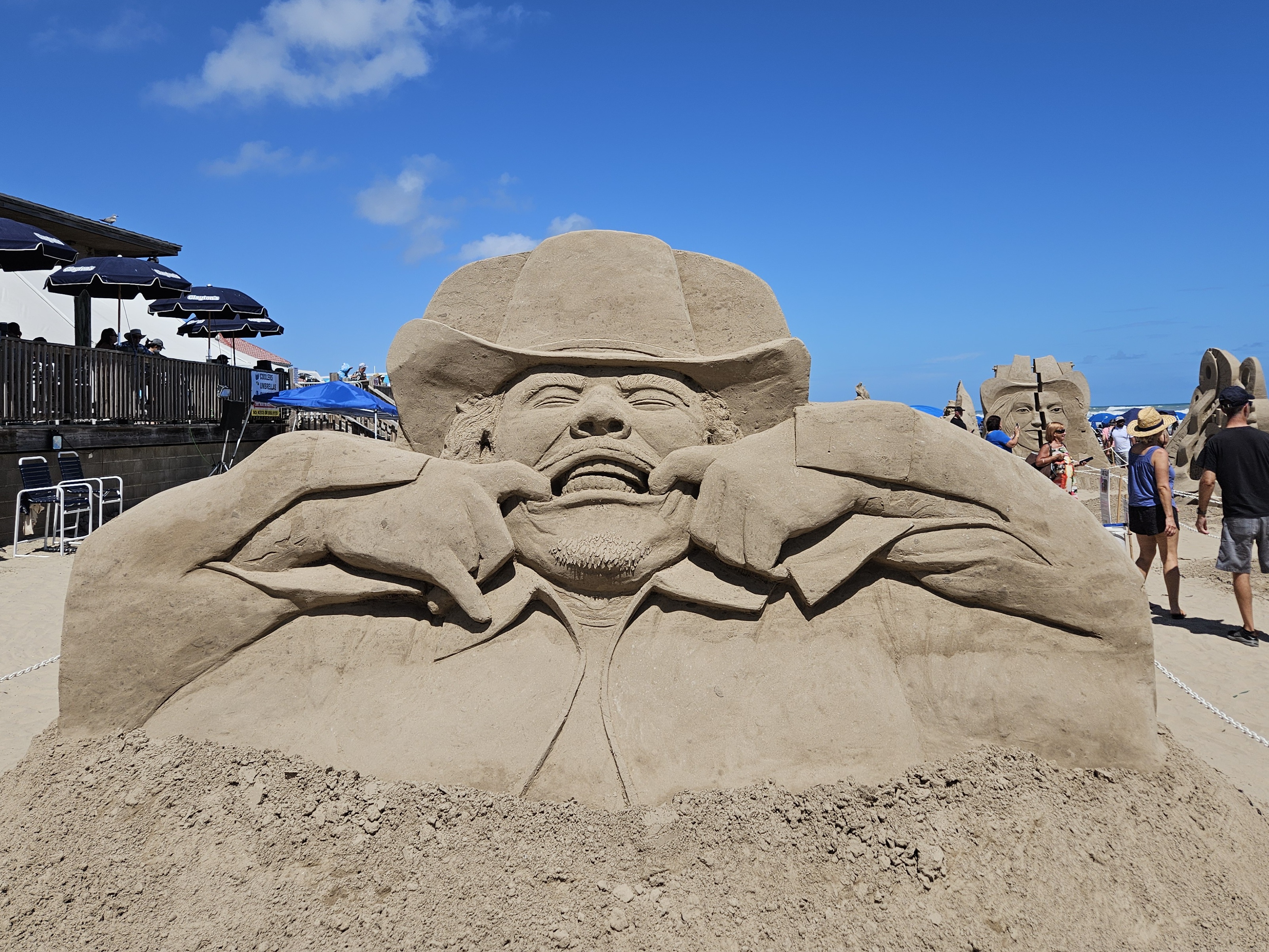 There were about a dozen sculptures on the beach, all of them very elaborate. The most impressive was sculpted by Master Sandsculptor Scott Dodson, of a large castle and surrounding woods. Dodson has been sculpting for over 40 years, and has had commissions from major airlines, cruise ships, resorts, beverage companies, state fairs and art shows.