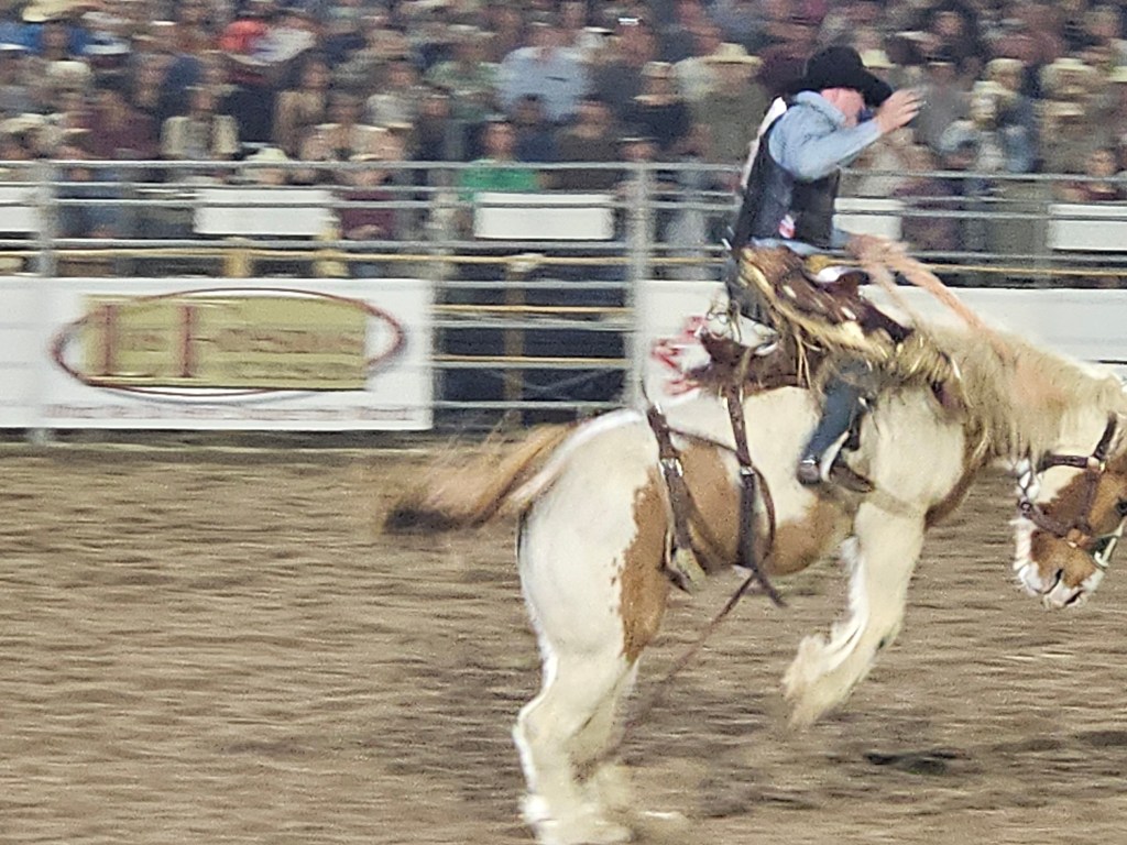 When we drove up, there was a long line of cars waiting to enter the rodeo grounds. We knew it would be a long wait, so we just parked a couple of blocks away and walked in. We were greeted with a few fireworks as we located our seats. I believe there isn’t a bad seat in the arena, as it’s small enough for everyone to see the full field of action.