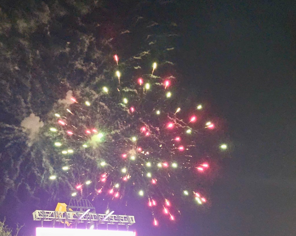 To cap off the evening, there was a short fireworks display and concert. Guests were invited to go down onto the field for the concert. We enjoyed the fireworks, but chose to skip the concert. It was a delightful evening, with perfect weather and great entertainment.