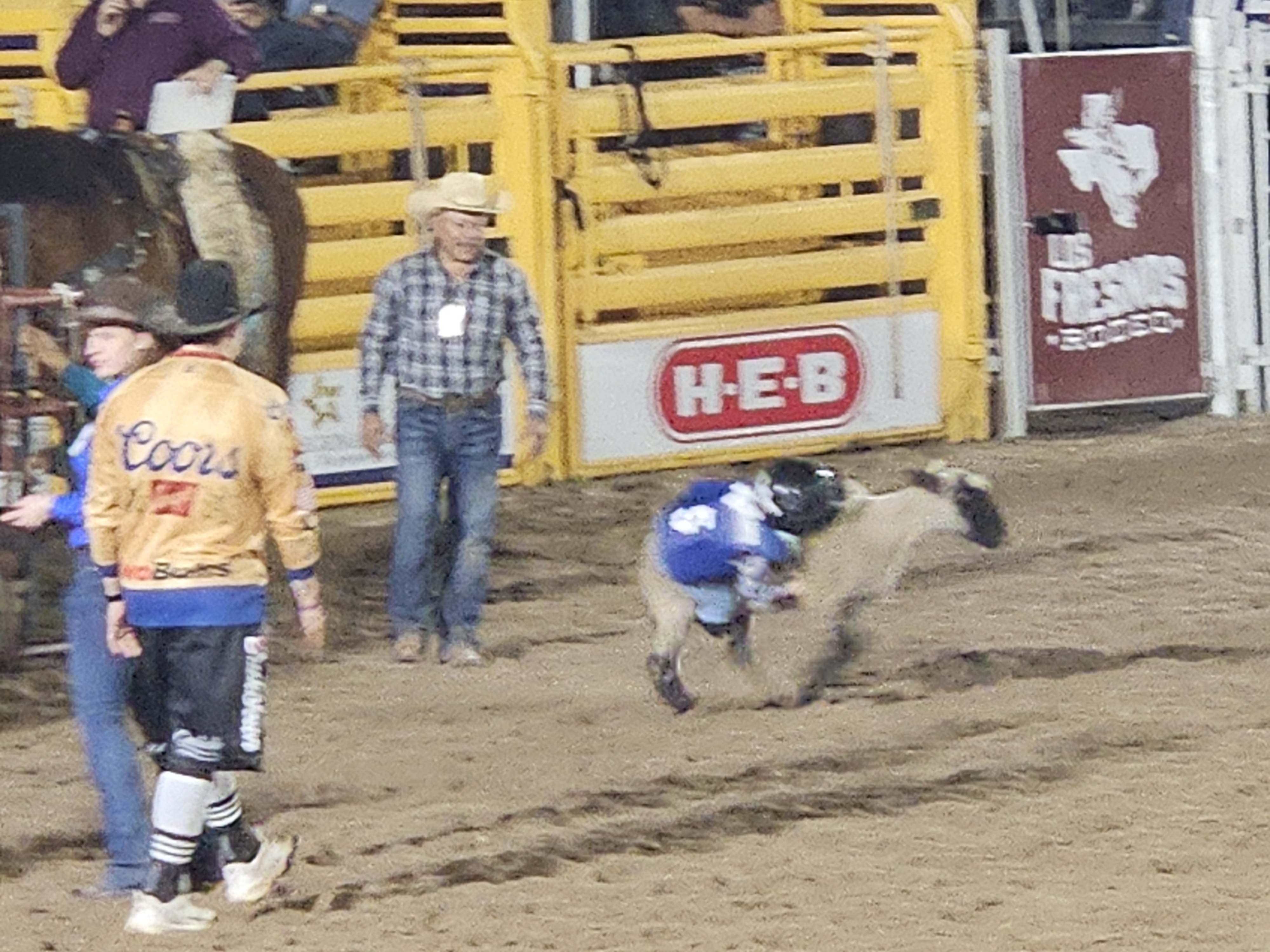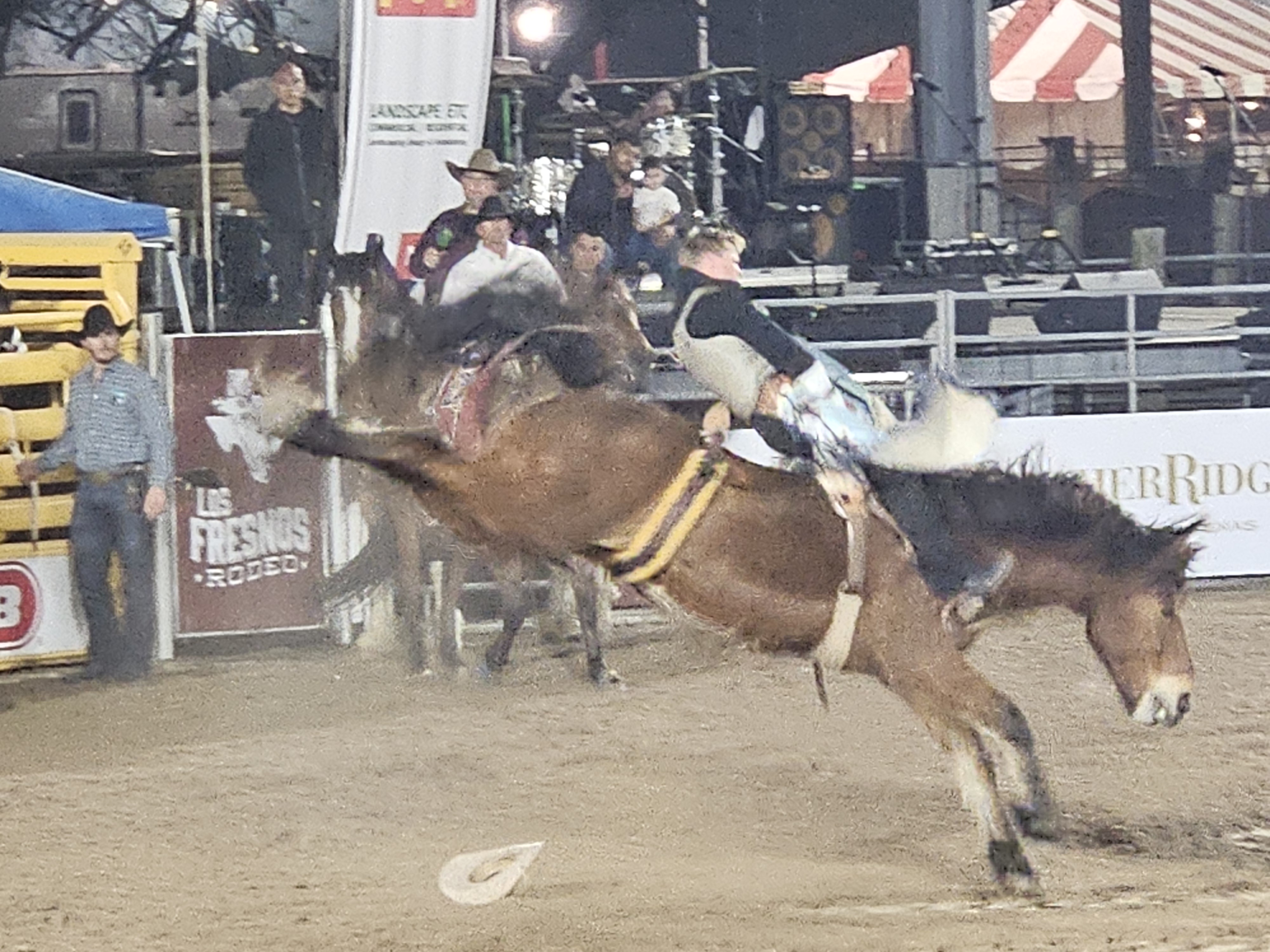 We had never been to a rodeo, which seemed almost disgraceful since we have been spending a couple of months each year in Texas since 2020. We decided to remedy the situation when we learned about the Los Fresnos Rodeo, which bills itself as the “Biggest Little Rodeo in Texas.” This is the 36th year of the Los Fresnos Rodeo, and the arena was near its capacity of 600, people of all ages. This is definitely a family event, lots of food and beverages, plus several midway rides. The weather was perfect, in the upper 70s, with a gentle breeze. Humidity was high, though, which affected the quality of the photos. Still, who can complain when the weather back home was freezing!