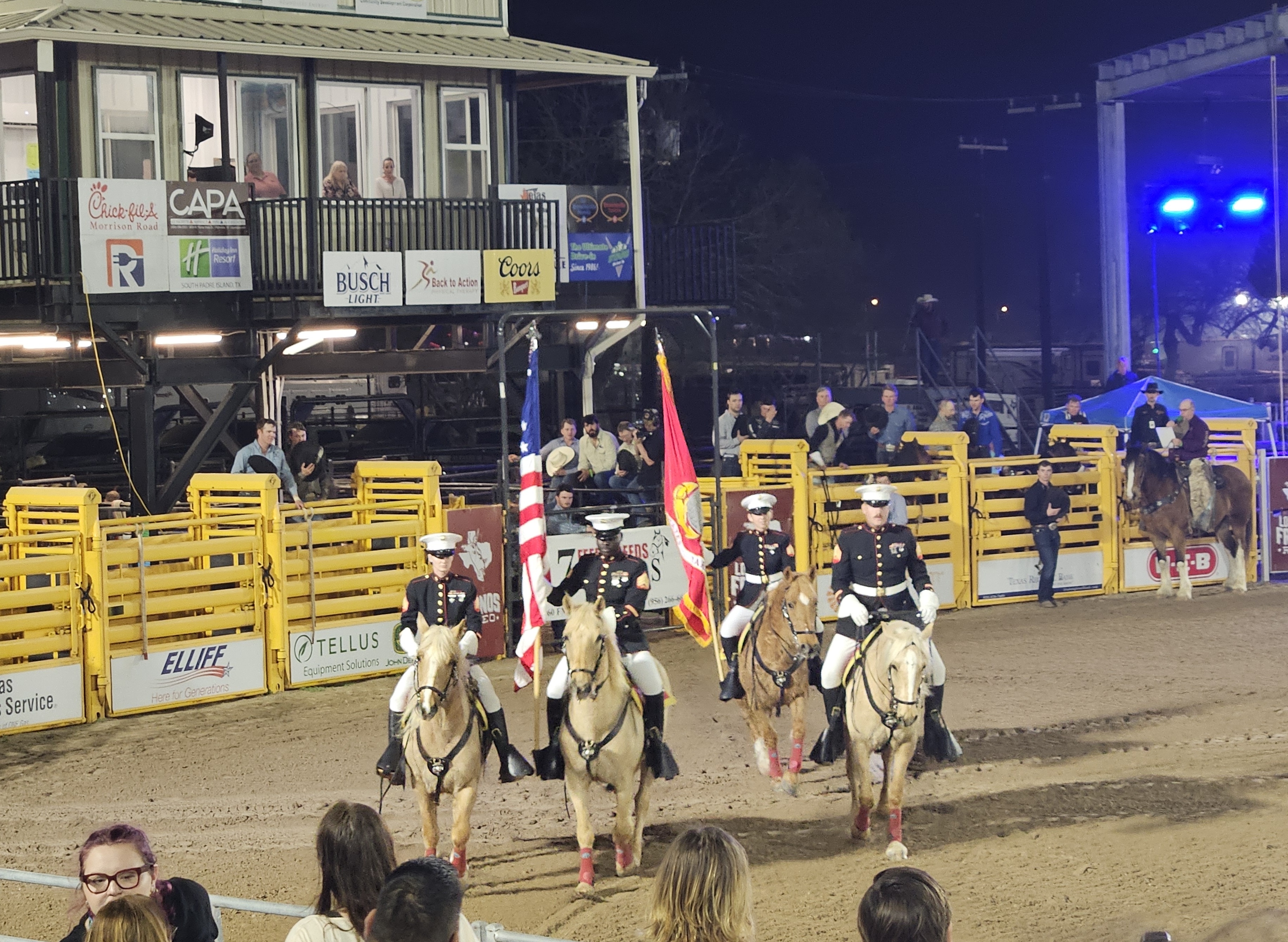 The event was opened by the Marine Corps Mounted Color Guard, the only remaining mounted military color guard in the United States. These four marines ride wild Palomino mustangs, adopted from the Bureau of Land Management’s “Adopt a Horse and Burro Program”. The Color Guard is based in California and travels to events throughout the country.