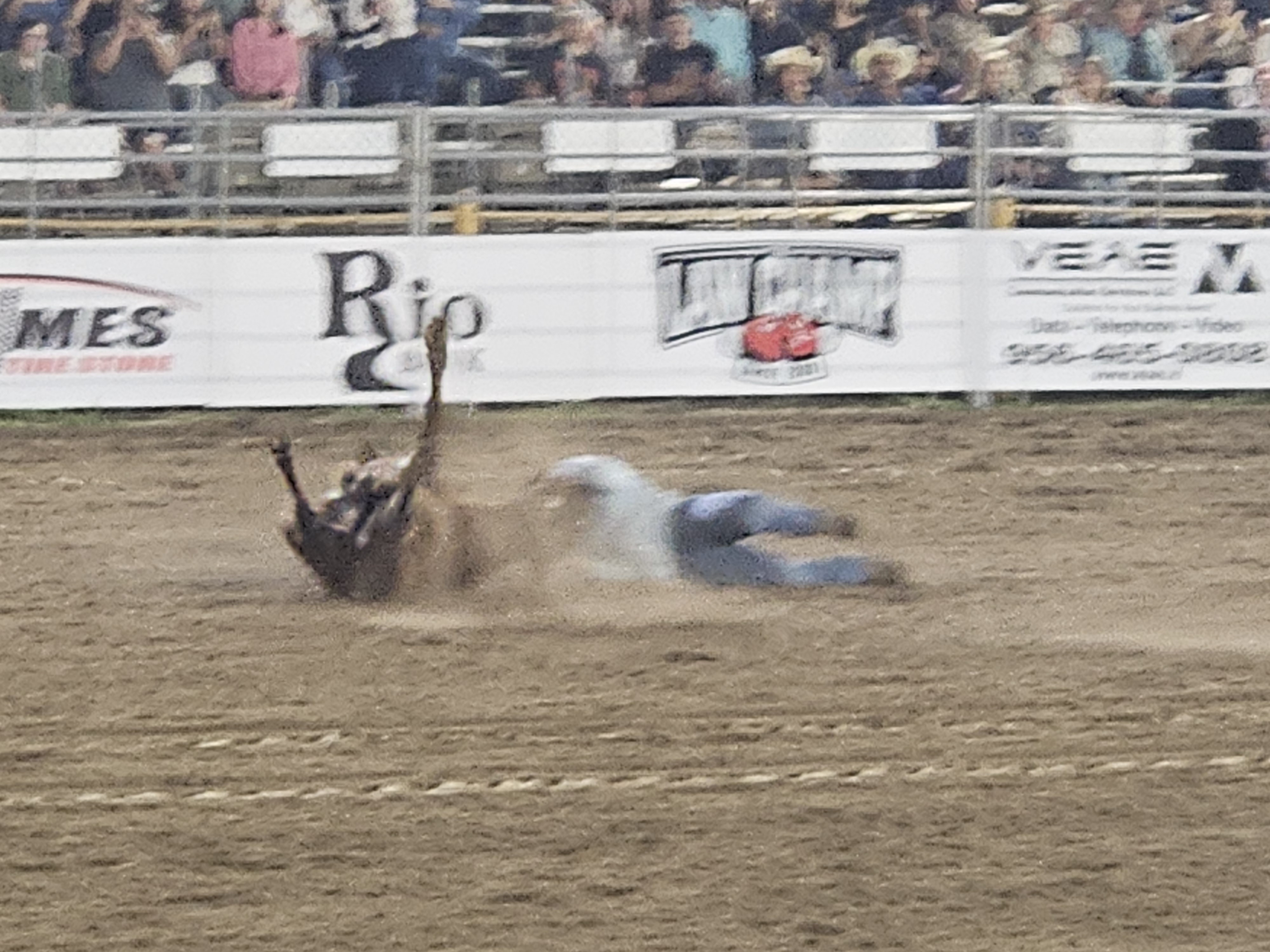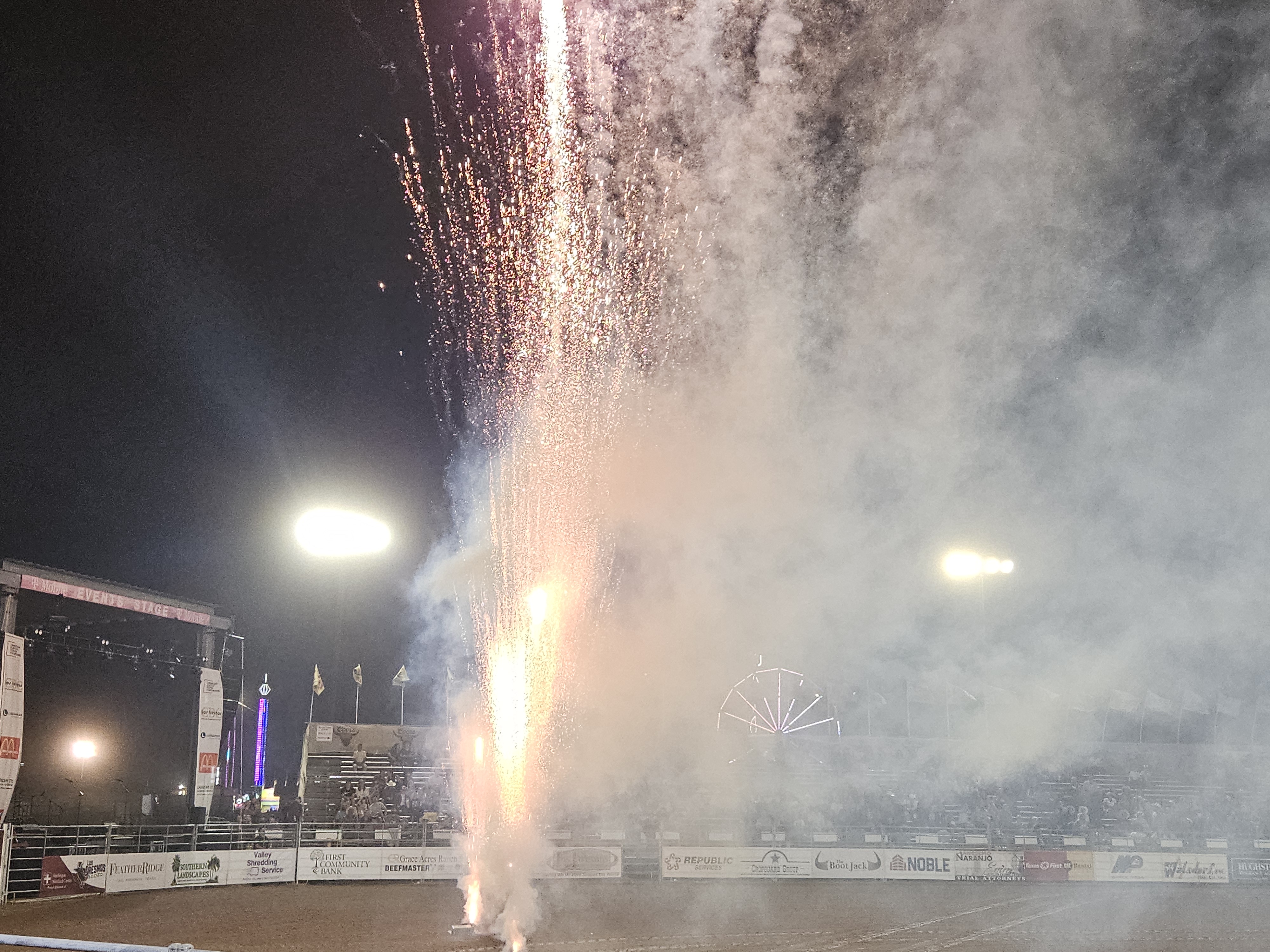 When we drove up, there was a long line of cars waiting to enter the rodeo grounds. We knew it would be a long wait, so we just parked a couple of blocks away and walked in. We were greeted with a few fireworks as we located our seats. I believe there isn’t a bad seat in the arena, as it’s small enough for everyone to see the full field of action.