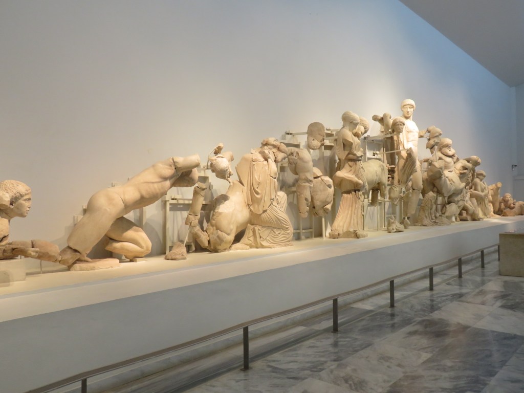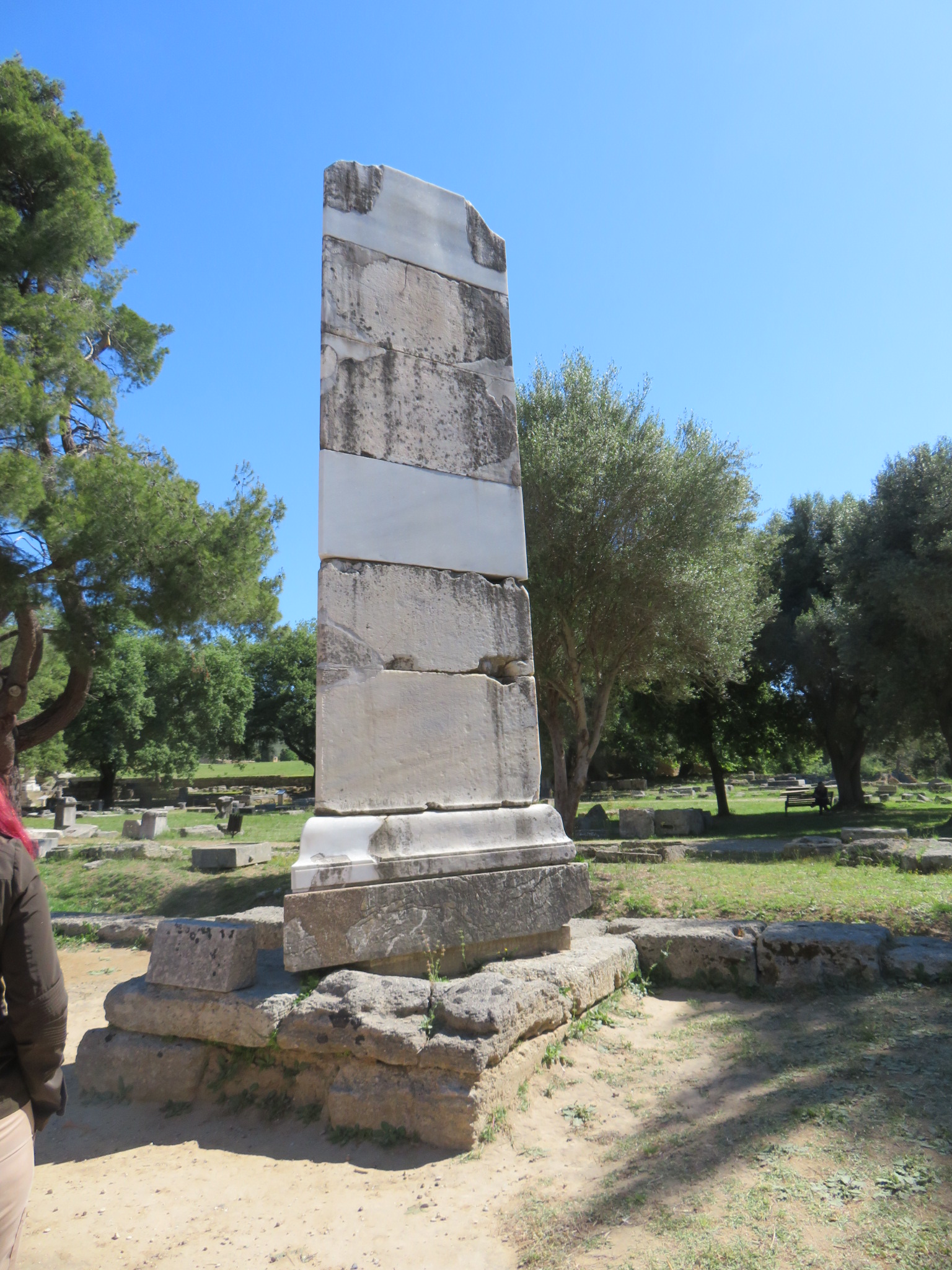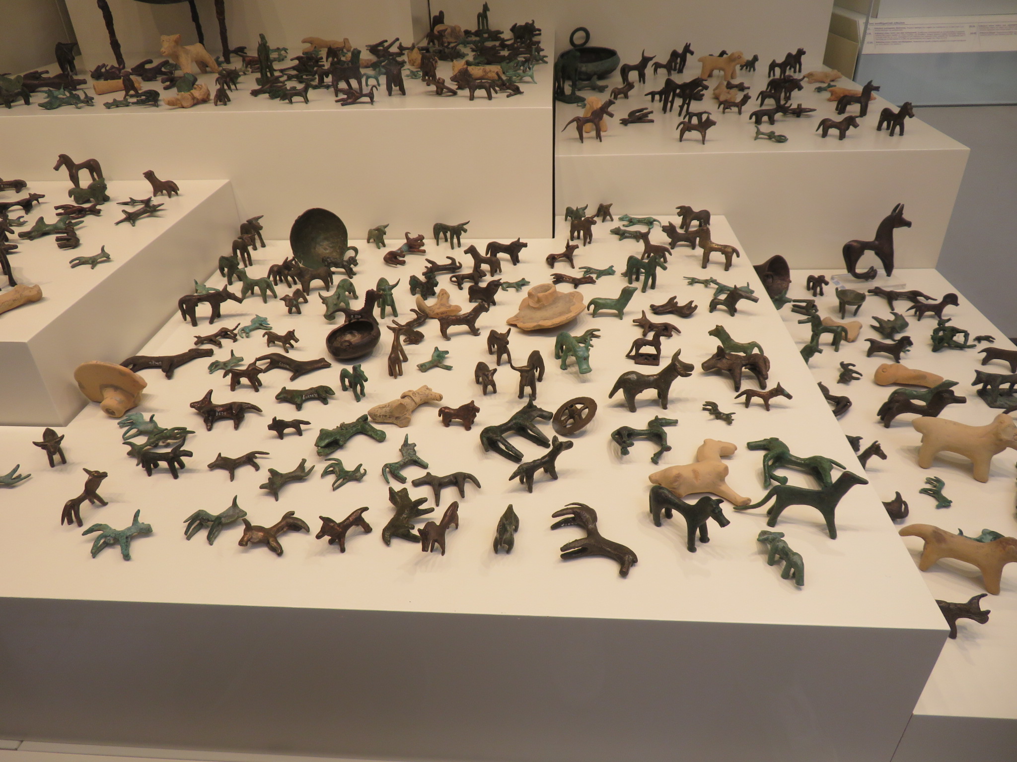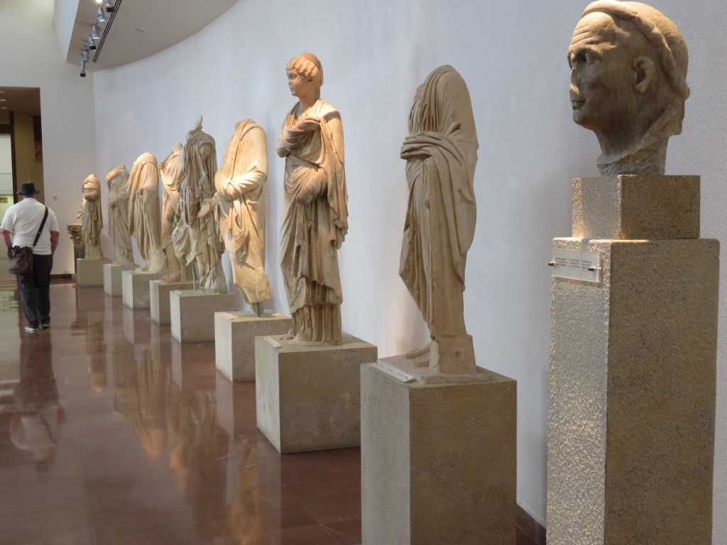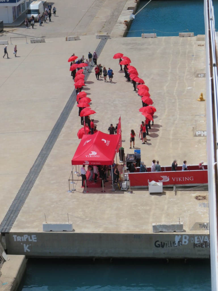 Sunsets are spectacular in Oia, which is located on the northern part of the island, and people gather every evening at Sunset Serenade point to enjoy it. We will have left port before that time – alas! At the southern end is the Akrotiri archaeological site. Akrotiri was a Minoan settlement that was destroyed by a volcanic eruption around 1600 BC, one of the largest in human history. After that eruption, the islands of Santorini formed a continuous ring of islands, with only one entrance from the outside. Later eruptions caused the form we see today, with a few islands surrounded by Santorini and Thirasia. Approximately 200 feet of volcanic materials. Archaeological excavations were started in 1870. Unfortunately, we were not able to visit the site today. Too much to see, too little time!!