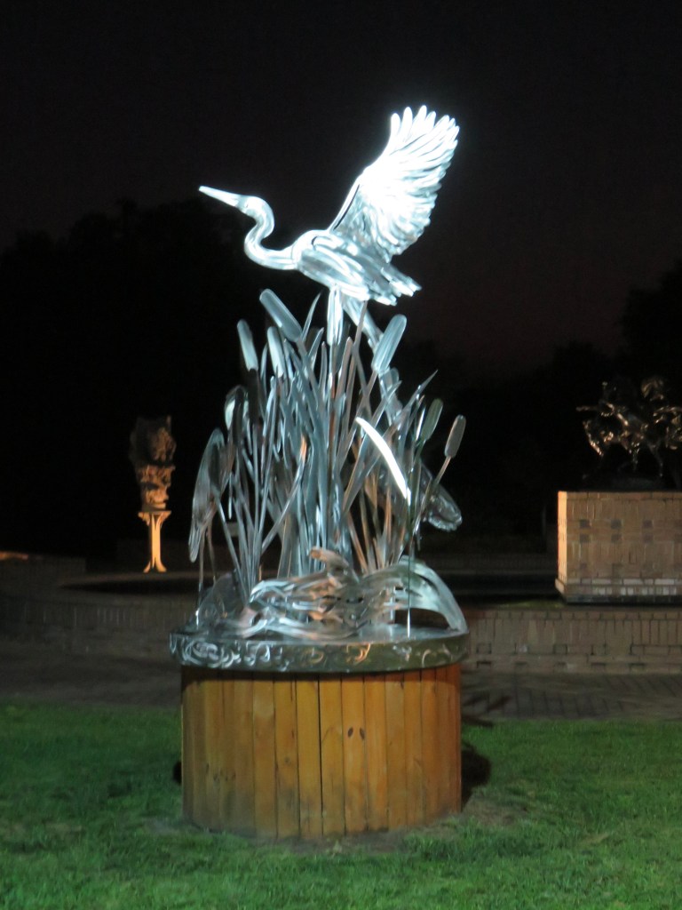 We passed through three locks on our way to the Quad Cities: Lock and Dam Number 12 near Bellevue, Iowa, with a drop of about eleven foot; Number 13 is at Fulton, Illinois, dropping us another eleven feet or so; and Number 14 at LeClaire, Iowa, with yet another eleven foot drop. LeClaire’s main claim to fame is that Buffalo Bill Cody was born here. That seems to be the extent of his connection, as his family moved to Canada when he was still an infant.